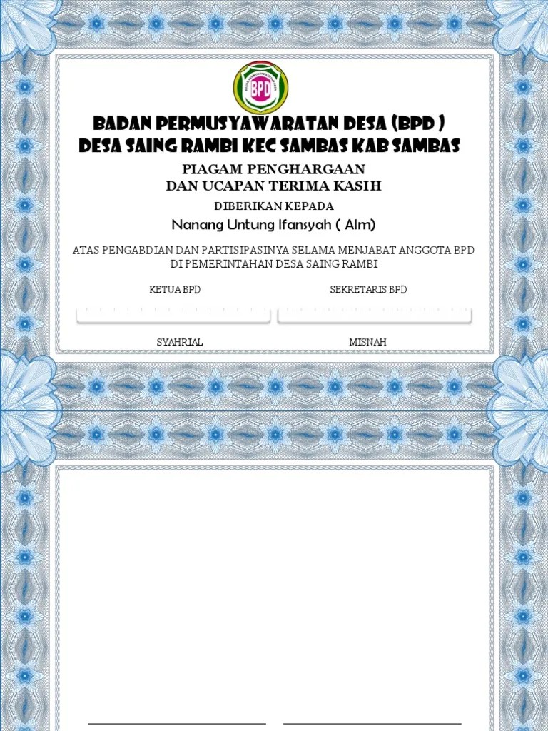 Contoh Piagam Penghargaan Dan Ucapan Terima Kasih - Sertifikat Terima Kasih Konfeti